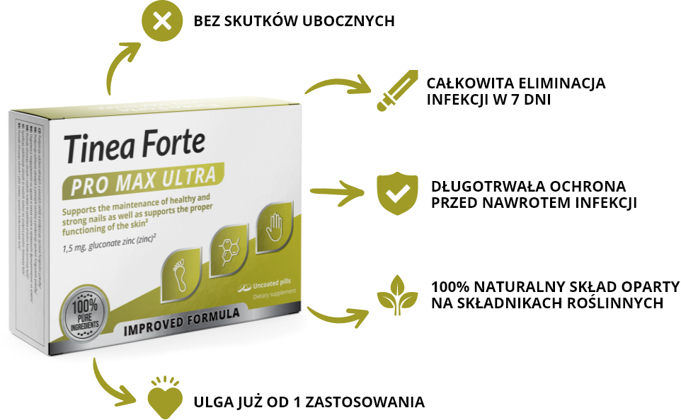 Antygrzybicza formuła Tinea Forte PRO MAX ULTRA jest od niedawna dostępna również w Polsce – zamówić ją można wyłącznie za pośrednictwem tej strony internetowej. Producent przygotował niezwykłą promocję dla 100 pierwszych osób z Polski. Otrzymają one opakowanie kuracji Tinea Forte PRO MAX ULTRA całkowicie ZA DARMO! Decyduje kolejność zgłoszeń.